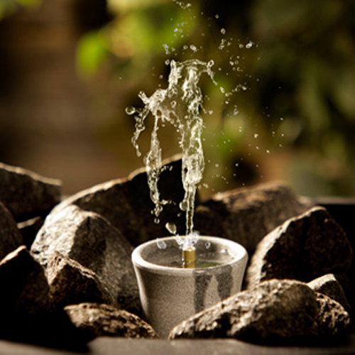 Die Wasserfontäne für den Saunaofen sorgt